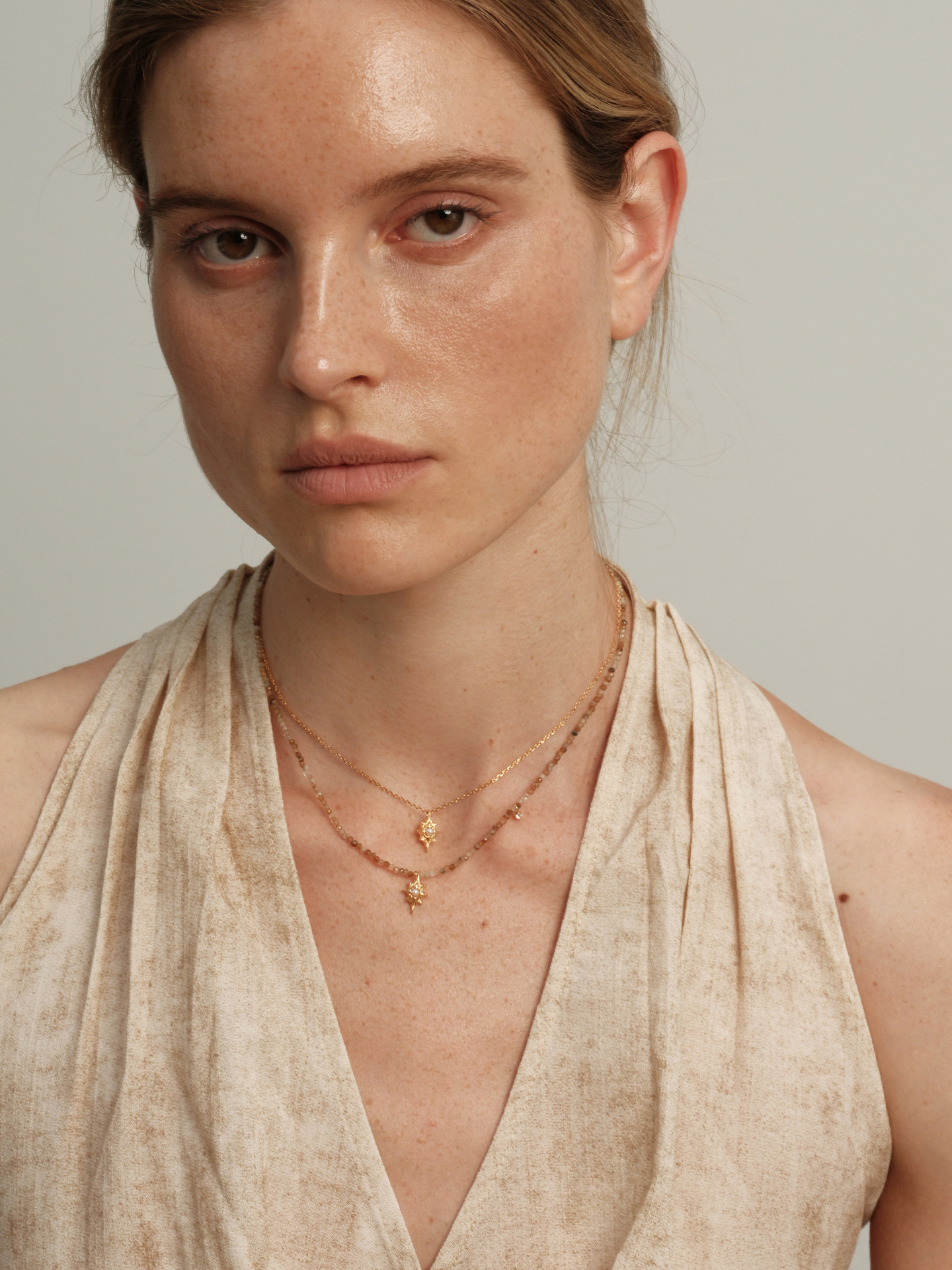Inspired by the timeless Hexagram symbol, this necklace carries the mystical power of Aurora—the goddess of dawn and light. For centuries, the six-pointed star has stood for strength, good fortune, and divine blessing, tracing constellations across cultures and eras.