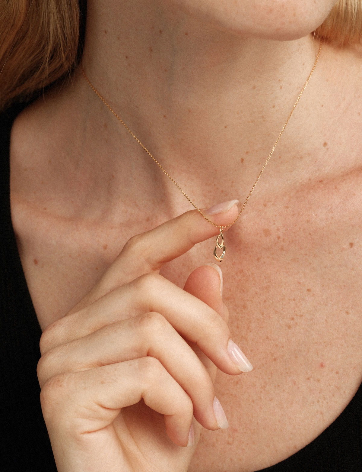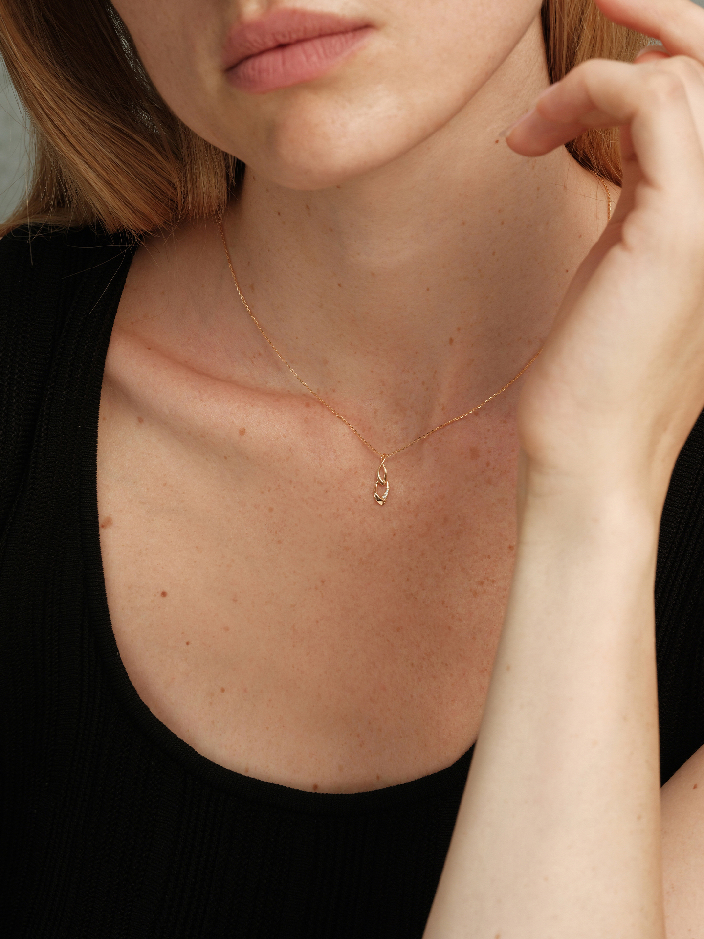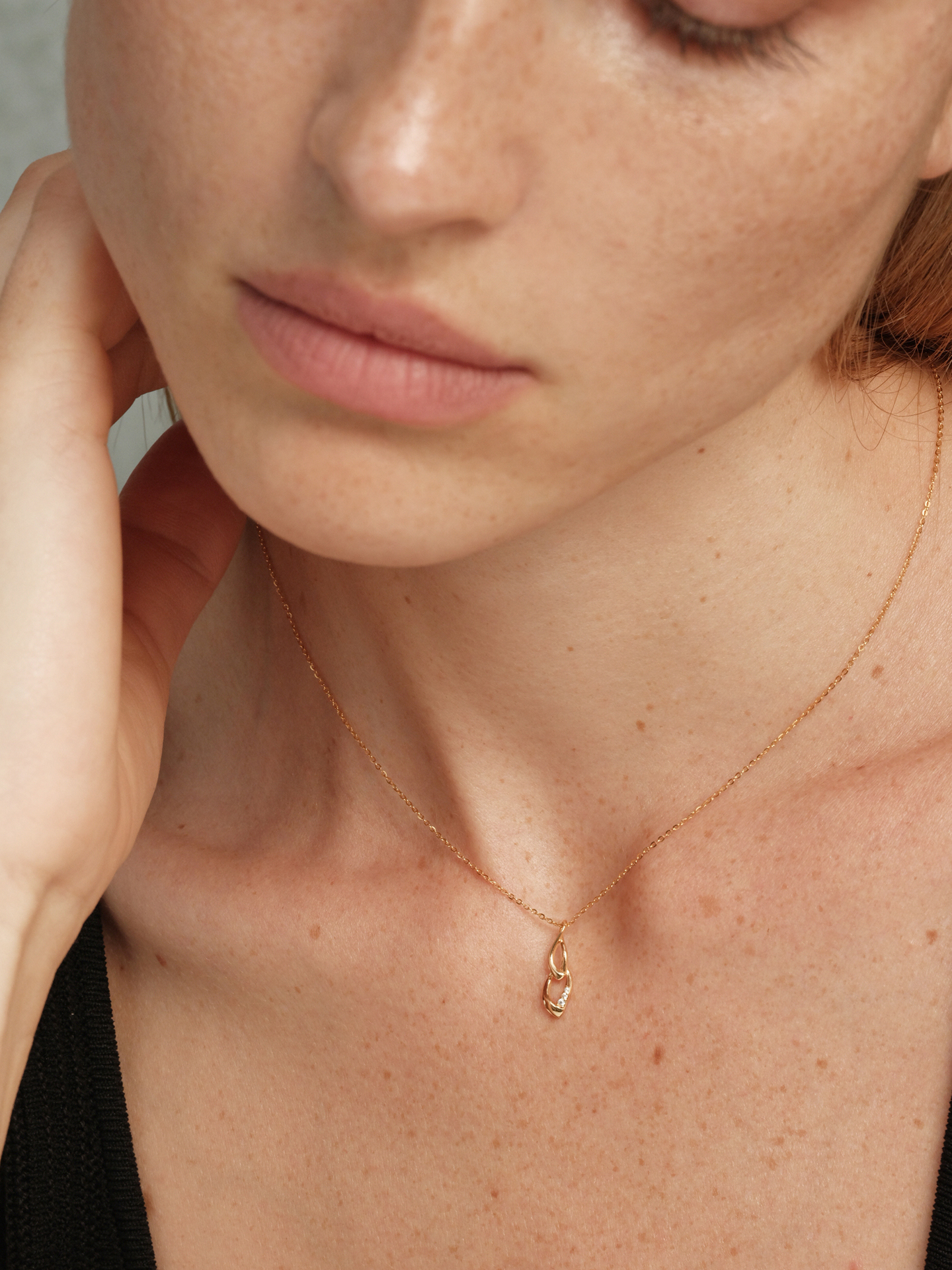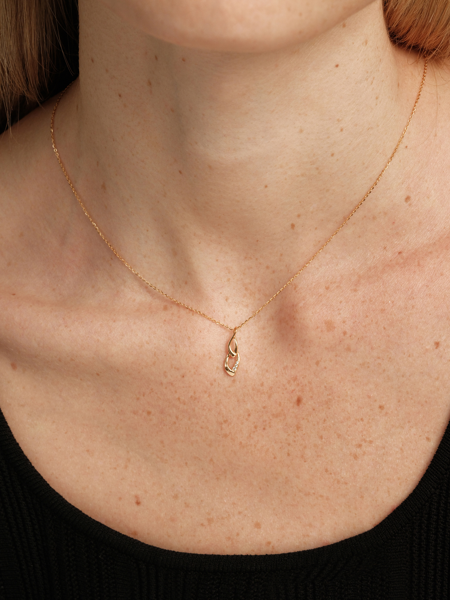Set with subtle side pavé cubic zirconia, the pendant shimmers softly with every movement—just enough sparkle to catch the light without overpowering your look.