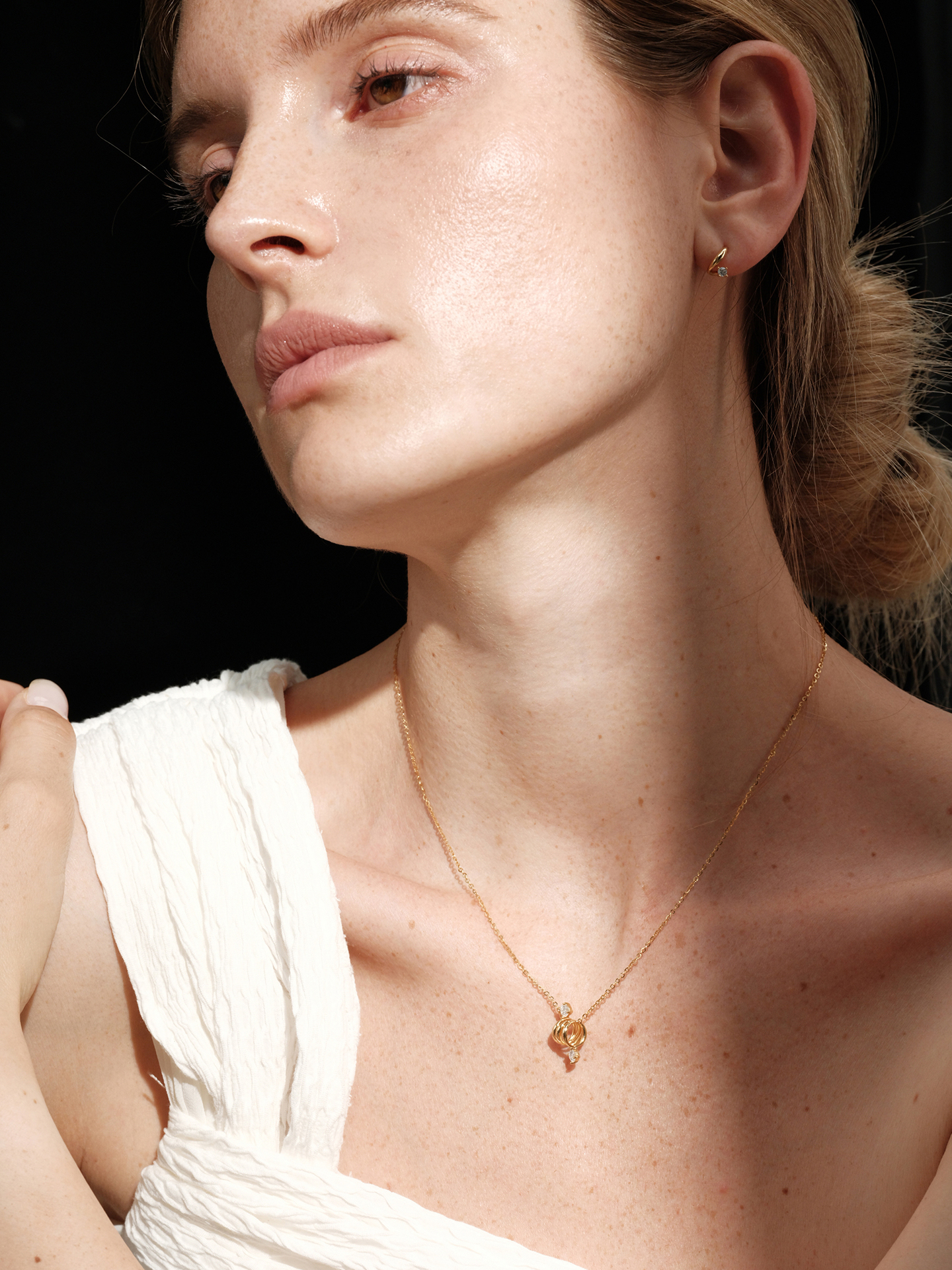 The design celebrates eternal motion and transformation, using a spiral-like form to frame the gem at the perfect angle. The result is a piece that feels fresh, alive, and effortlessly modern—an everyday ode to quiet beauty and boundless possibility.