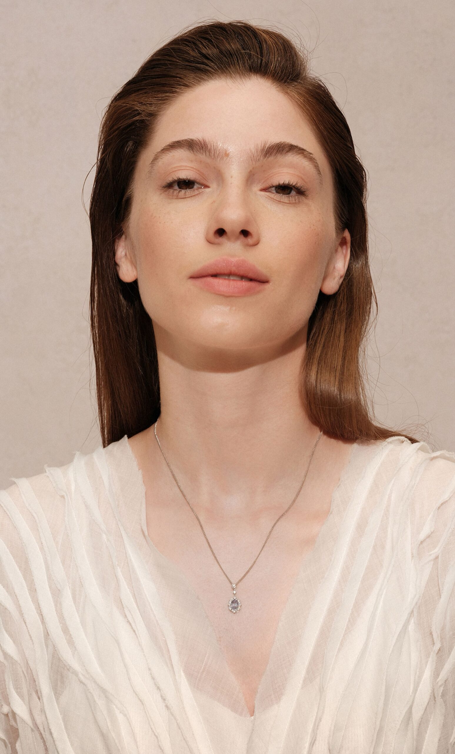 At the center of the pendant lies a cultivated Alexandrite, known as the “traveler’s stone,” famed for its remarkable color-changing ability. Under daylight, it reveals a serene bluish-green glow; under lamplight, it transforms into warm purplish-red. This duality mirrors Sissi’s life: the tension between public duty and private freedom, between brilliance and quiet selfhood.